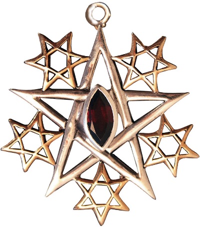 Ένας γρανάτης, σύμβολο της πεμπτουσίας, βρίσκεται μέσα σε μια μεγάλη πεντάλφα η οποία πλαισιώνεται από άλλες 5 μικρότερες, για να φέρουν προστασία και ανεπτυγμένες ψυχικές ικανότητες και 6η αίσθηση.
