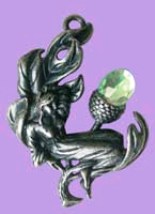 Μενταγιόν με πανέμορφη νεράϊδα ξαπλωμένη σε ένα φύλλο βελανιδιάς, με βελανίδι στολισμένο με κρύσταλλο Swarovski.