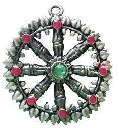 Οι 8 Ακτίνες του συμβολίζουν τα 8 Μονοπάτια του Βουδισμού και ο τέλειος κύκλος του Τροχού συμβολίζει την τελειότητα και την πληρότητα των διδαγμάτων του Βούδα.