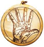 Φυλακτό που απεικονίζει το Χέρι της Τύχης, με πλανητικά σύμβολα. Φορέστε το για να σας ανοίξουν εύκολα όλες οι καλές προοπτικές και ευκαιρίες και για να φέρετε ευτυχία και πολύ καλή τύχη στην ζωή σας.
