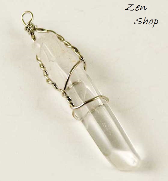 Μενταγιόν με ακατέργαστη αιχμή χαλαζία δεμένη με ατσαλόσυρμα.