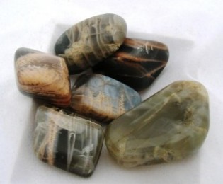 Μεγάλο βότσαλο μαύρου σεληνόλιθου, περίπου 3-4 εκ. μήκος.