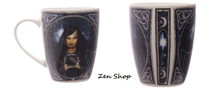 Κούπα της Lisa Parker από πορσελάνη υψηλής ποιότητας με κελτικές μπορντούρες και gothic άγγελο με μαύρα φτερά που κρατάει μια κρυστάλλινη σφαίρα.