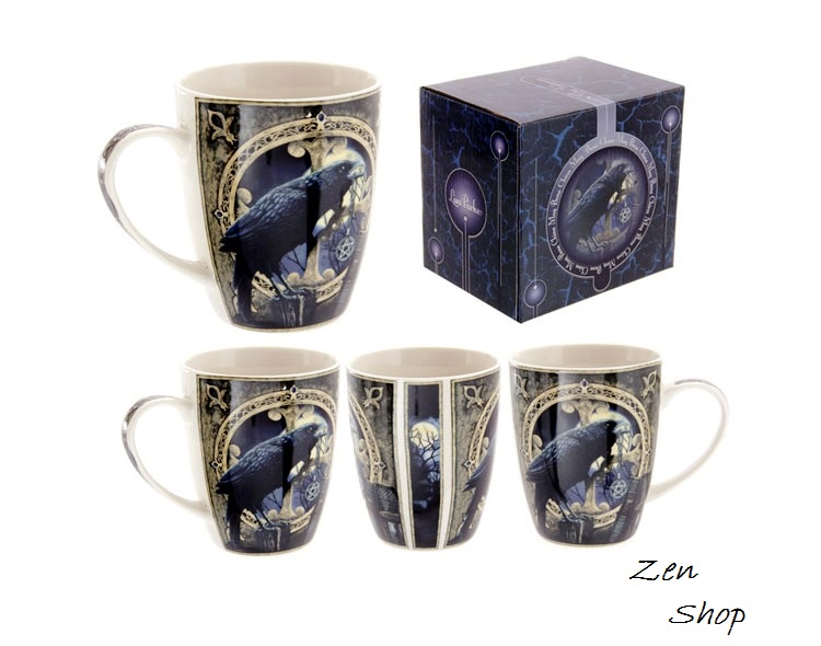 Κούπα της Lisa Parker από πορσελάνη υψηλής ποιότητας με κελτικές μπορντούρες και μαύρο κοράκι.