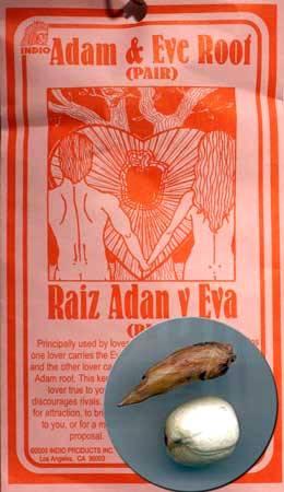 Η ρίζα προέρχεται από ένα λουλούδι που μοιάζει με ορχιδέα και αποτελείται από δύο μέρη, τον Αδάμ (μακρόστενο μέρος που συμβολίζει το αρσενικό) και την Εύα (το στρογγυλό μέρος που συμβολίζει το θηλυκό). Χρησιμοποιείται ευρέως σε ερωτικές διεργασίες για ερωτική έλξη, αγάπη και γάμο.